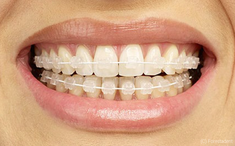 Wer beim Lächeln keine auffälligen Brackets aus Metall zeigen will, aber eine feste Zahnspange bevorzugt, findet mit Keramik-Brackets eine diskrete Alternative. Brackets aus Keramik sind fast unsichtbar. Die natürliche Zahnfarbe scheint durch die Brackets hindurch. Dabei sind sie genauso effektiv wie Metall-Brackets.